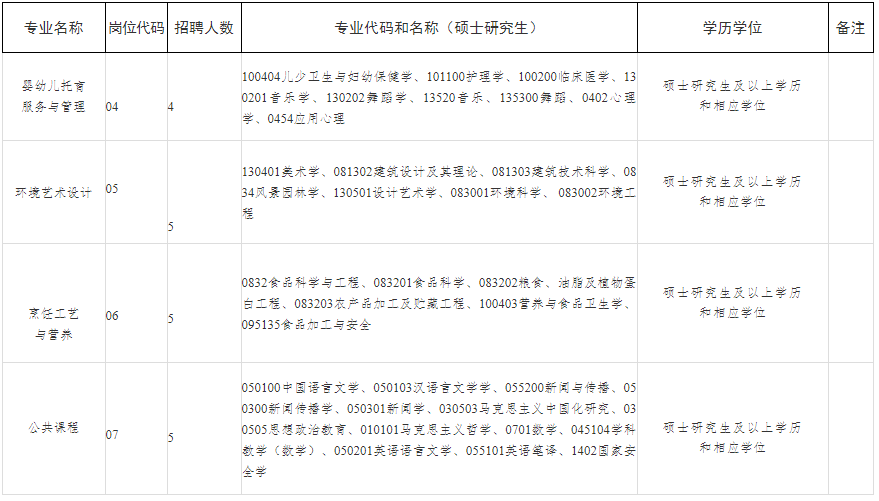 具體招聘數量、專業和條件見《商丘職業技術學院輕工業學院2025年公開招聘人事代理工作人員崗位信息表》(附件1)。