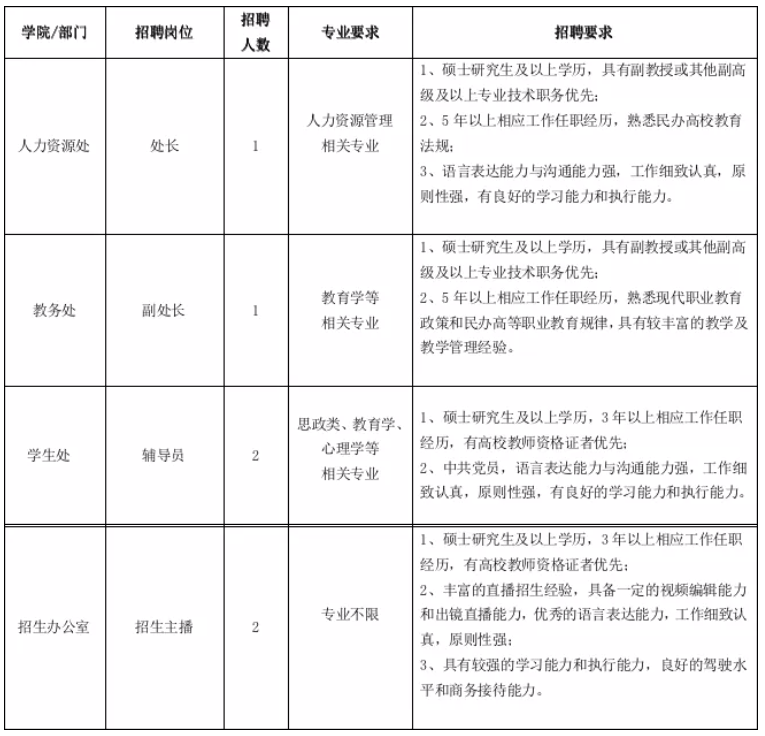 4、具有崗位所需要的專業和技能條件,具有科研創新能力,統招碩士研究生及以上學歷(特別優秀的可以放寬到統招本科、非統招碩士研究生);相應崗位需具有高校教師資格證書(具體要求以《招聘崗位及具體要求》為準);