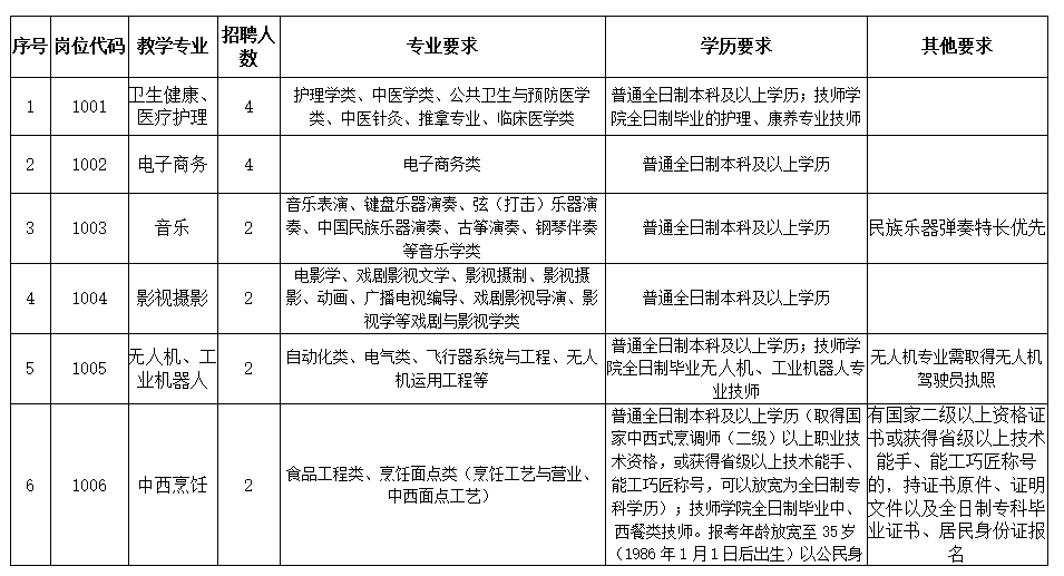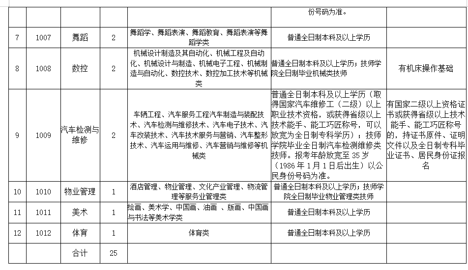 1. 全日制本科以上學歷及技師院校畢業的全日制技師(持有技師院校畢業證),年齡在30周歲以下(1991年1月1日以后出生),以公民身份號碼為準。其中中西烹飪和汽車檢測與維修專業報考年齡放寬至35歲(1986年1月1日后出生),以公民身份號碼為準。