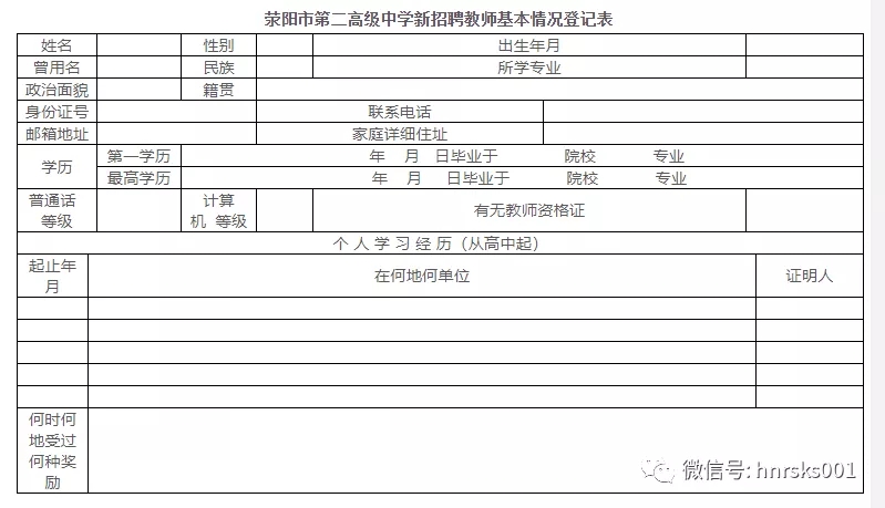 鄭州市滎陽市第二高級中學招聘高中物理,化學,生物教師