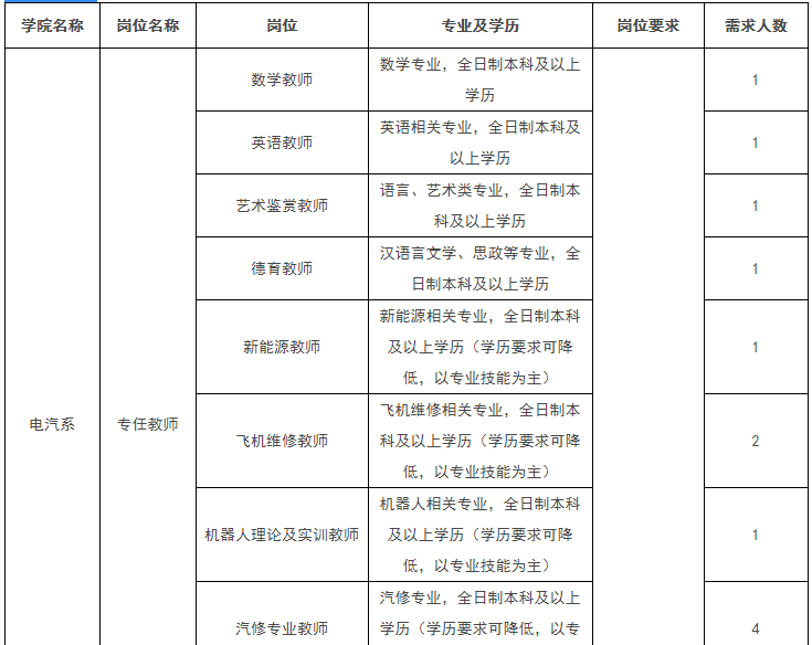 信陽航空職業學院(中專校區)招聘教師【時間至8.31】