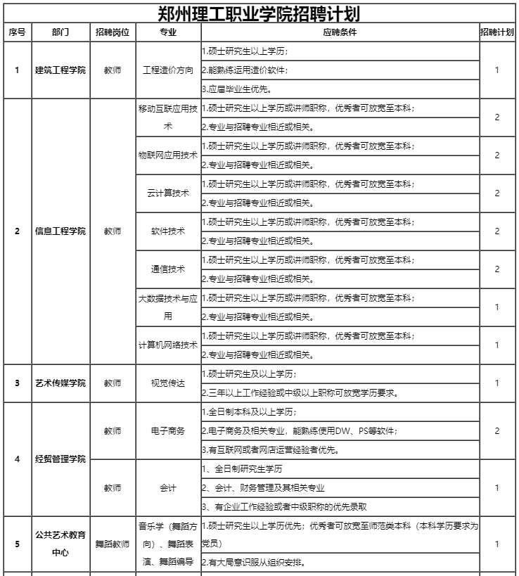 鄭州理工職業學院面向社會誠聘教師