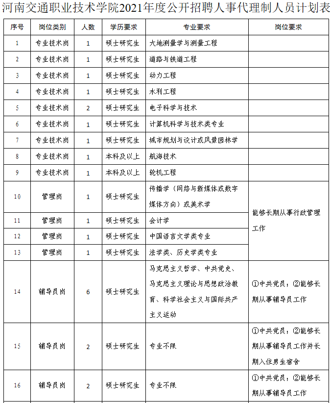 河南交通職業(yè)技術(shù)學(xué)院2021年度人事代理制人員招聘公告