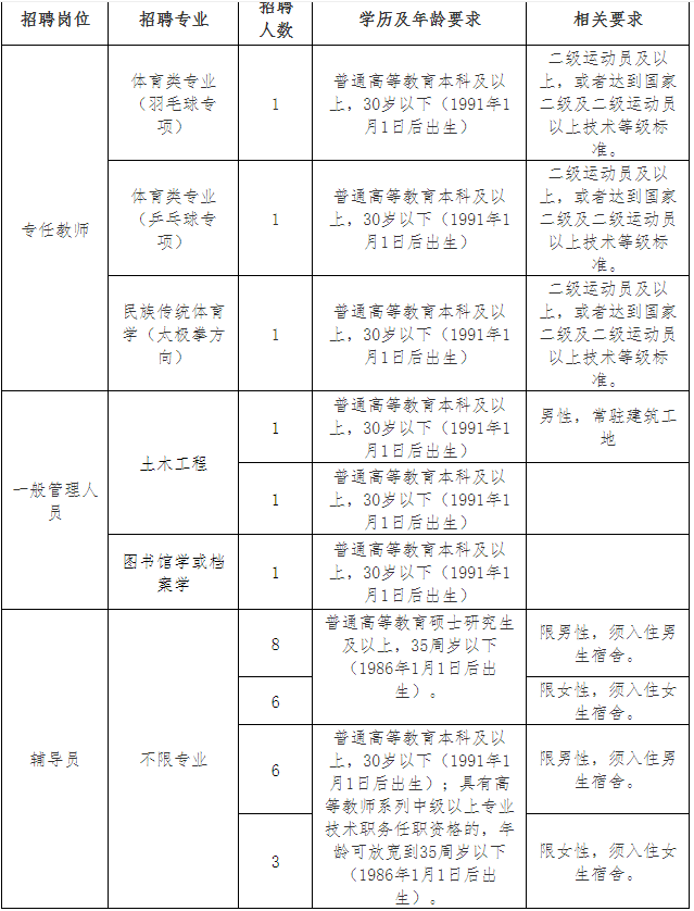 (1)一般管理人員和輔導員崗位