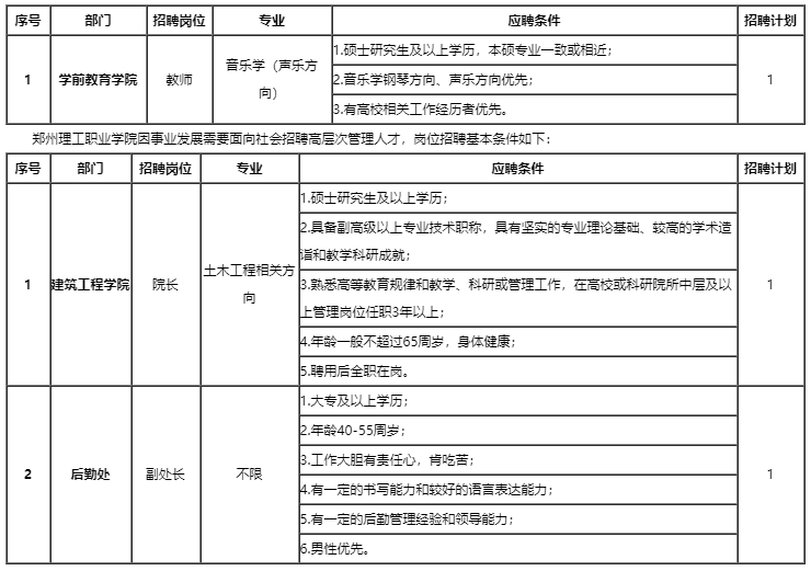 鄭州理工職業學院因事業發展需要面向社會誠聘專職教師,崗位招聘基本條件如下: