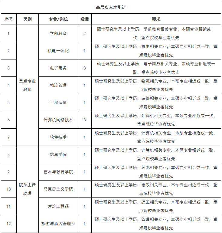 鄭州信息工程職業學院2021-2022學年人才引進計劃