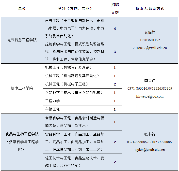 請應聘人員將個人簡歷發送至擬應聘學院電子郵箱,并同步抄送至人事處招聘郵箱:zhaopin@zzuli.edu.cn,郵件名稱以“應聘學院+姓名+專業方向”格式命名。