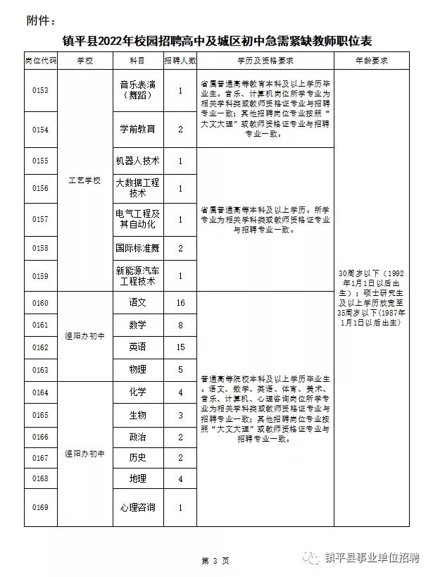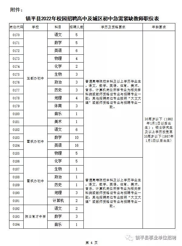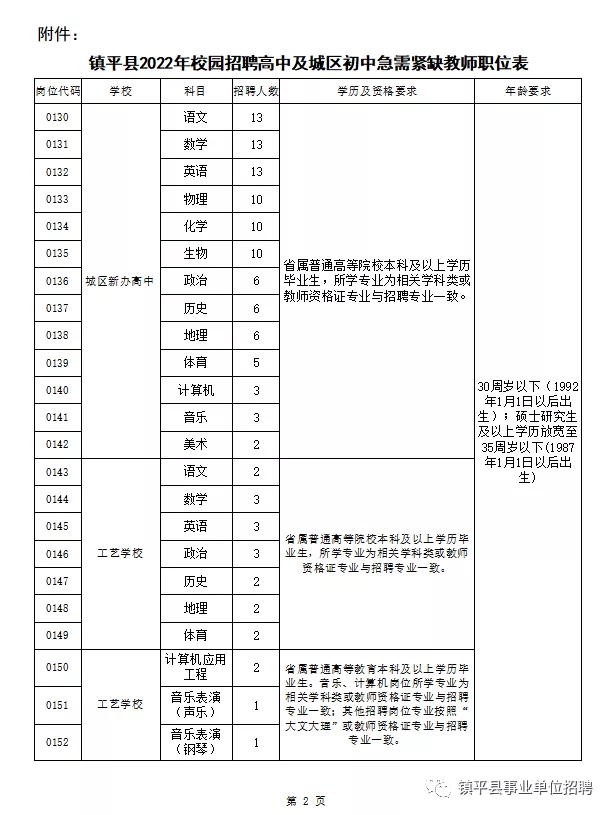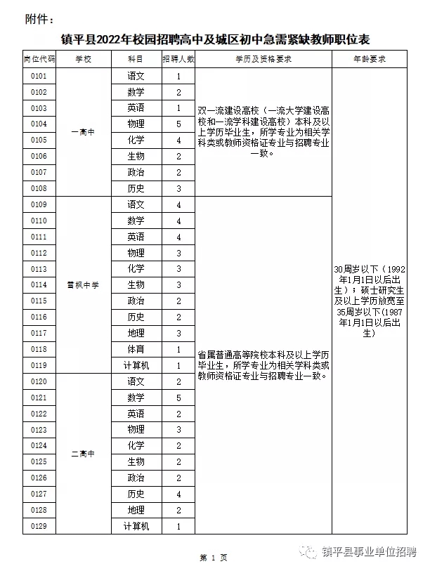 學歷、專業及教師資格條件詳見《鎮平縣2022年校園招聘高中及城區初中急需緊缺教師職位表》(附件)。