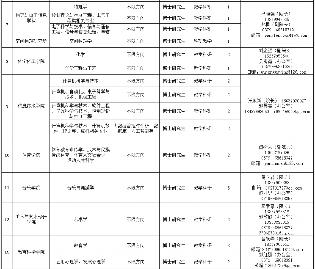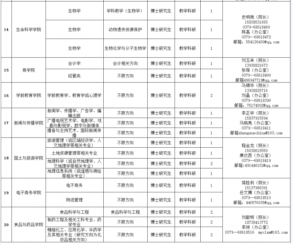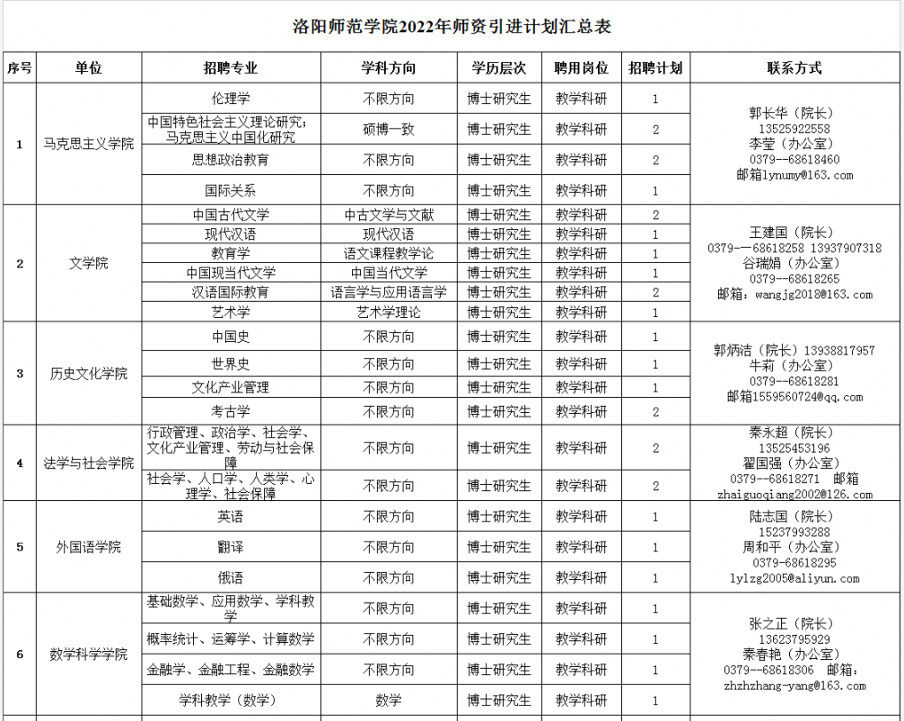 高層次人才(博士研究生)引進崗位、專業及人數,詳見附件《洛陽師范學院2022年師資引進計劃》。