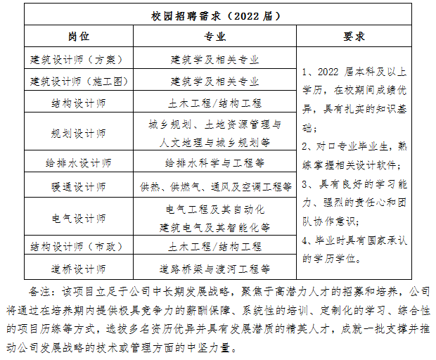 備注:該項(xiàng)目立足于公司中長(zhǎng)期發(fā)展戰(zhàn)略,聚焦于高潛力人才的招募和培養(yǎng),公司將通過(guò)在培養(yǎng)期內(nèi)提供極具競(jìng)爭(zhēng)力的薪酬保障、系統(tǒng)性的培訓(xùn)、定制化的學(xué)習(xí)、綜合性的項(xiàng)目歷練等方式,選拔多名資歷優(yōu)異并具有發(fā)展?jié)撡|(zhì)的精英人才,成就一批支撐并推動(dòng)公司發(fā)展戰(zhàn)略的技術(shù)或管理方面的中堅(jiān)力量。