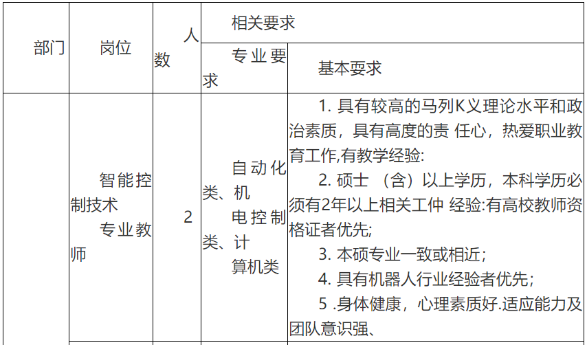 河南水利與環境職業學院與河南水滴智能技術有限公司2019年聯合成立了混合所有制 二級學院智能制造產業學院。產業學院目前開設有工業機器人技術、智能控制技術、工業互 聯網技術、環境藝術設計等專業,其中工業機器人技術專業開設安裝調試與運維工程師、機 器視覺工程師兩個方向,目前在校生超千人。因工作需要,根據學院招聘的有關規定,智能 制造產業學院面向社會公開招聘工作人員,有關事項公告如下。
