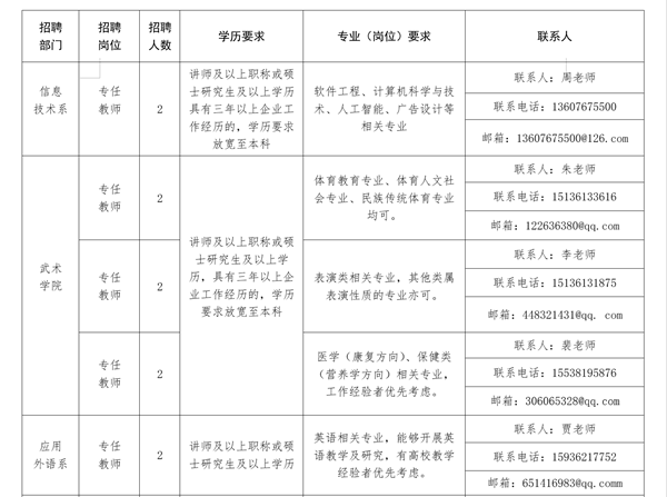 嵩山少林武術職業學院2022年招聘公告