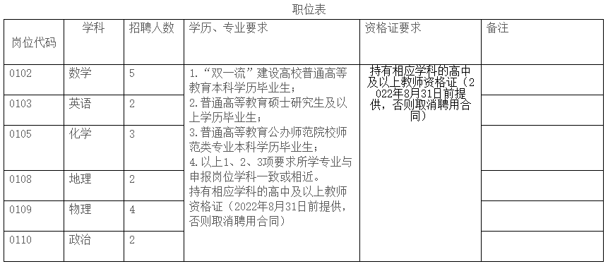 (三)學歷、專業及教師資格條件(詳見職位表)