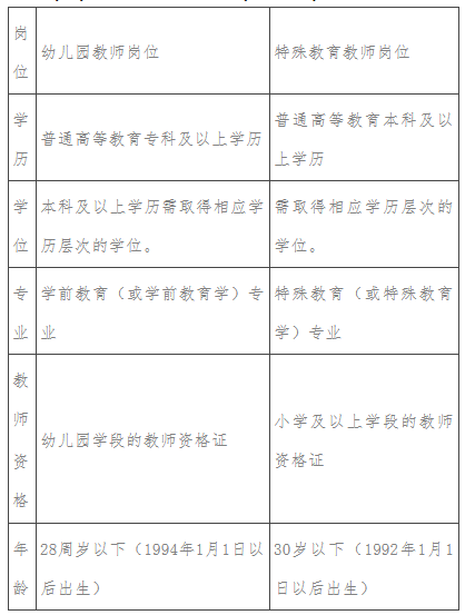 招聘幼兒園教師根據全市各公辦幼兒園教師需求進行分配,特殊教育教師分配去向為市特殊教育學校。