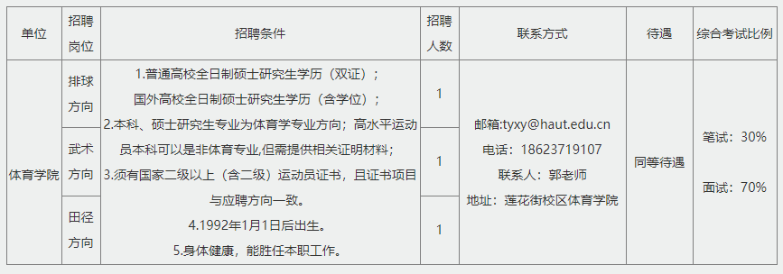 (三)報名及招聘具體工作安排見《河南工業大學校體育學院2022年公開招聘非事業編制教師崗位人員工作方案》(見附件)