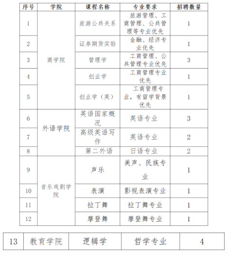 根據(jù)我校各專業(yè)學(xué)院下學(xué)期教學(xué)工作需求,現(xiàn)面向校內(nèi)外招聘兼職教師,具體要求如下 :