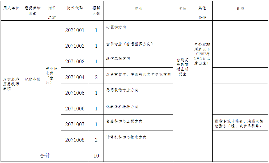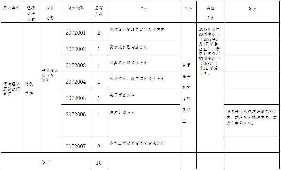 本次公開招聘教師20名,招聘的具體專業、人數、崗位要求詳見《河南經濟貿易技師學院2022年公開招聘教師一覽表》(附件1及附件1(續))。