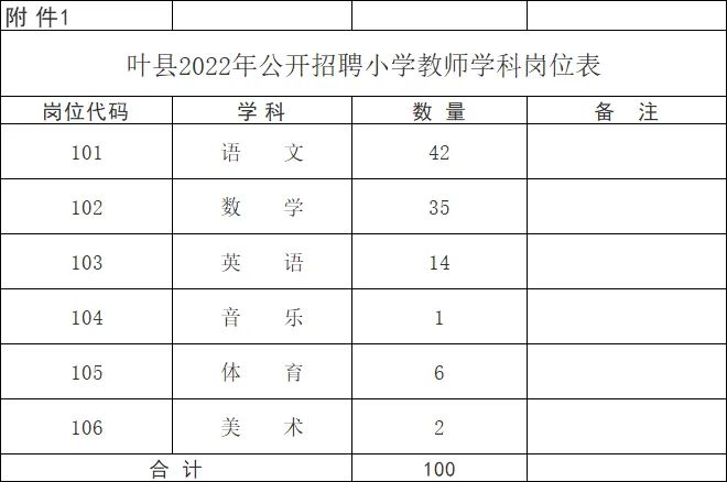 附件:1.葉縣2022年公開招聘小學教師學科崗位表