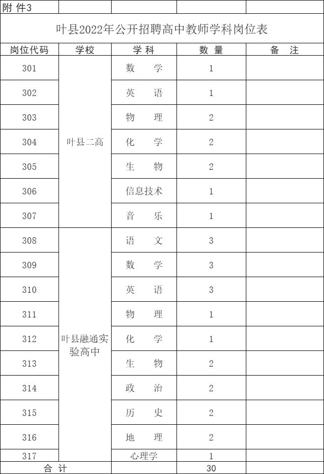 3.葉縣2022年公開招聘高中教師學科崗位表