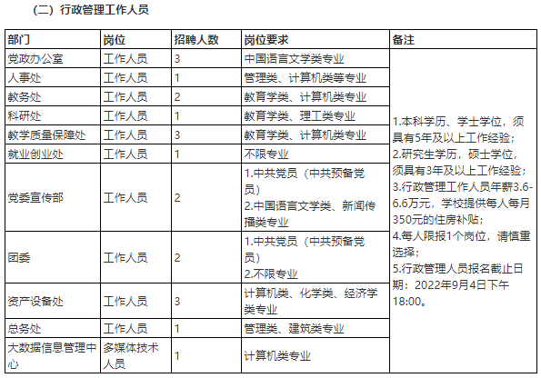 2.教授(教授級高工)年薪13.2-16萬元,副教授12.45-15萬元,非教師系列副高級職稱人員年薪9.9-12萬;學校為高級職稱教師提供住房。