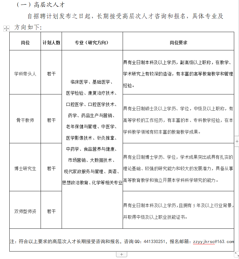 郵箱地址:zzyyjkrs@163.com。發送郵件主題為“崗位代碼+學歷+畢業學校+所學專業+姓名”。(例如:0501+研究生+某某大學+口腔醫學+王某)。