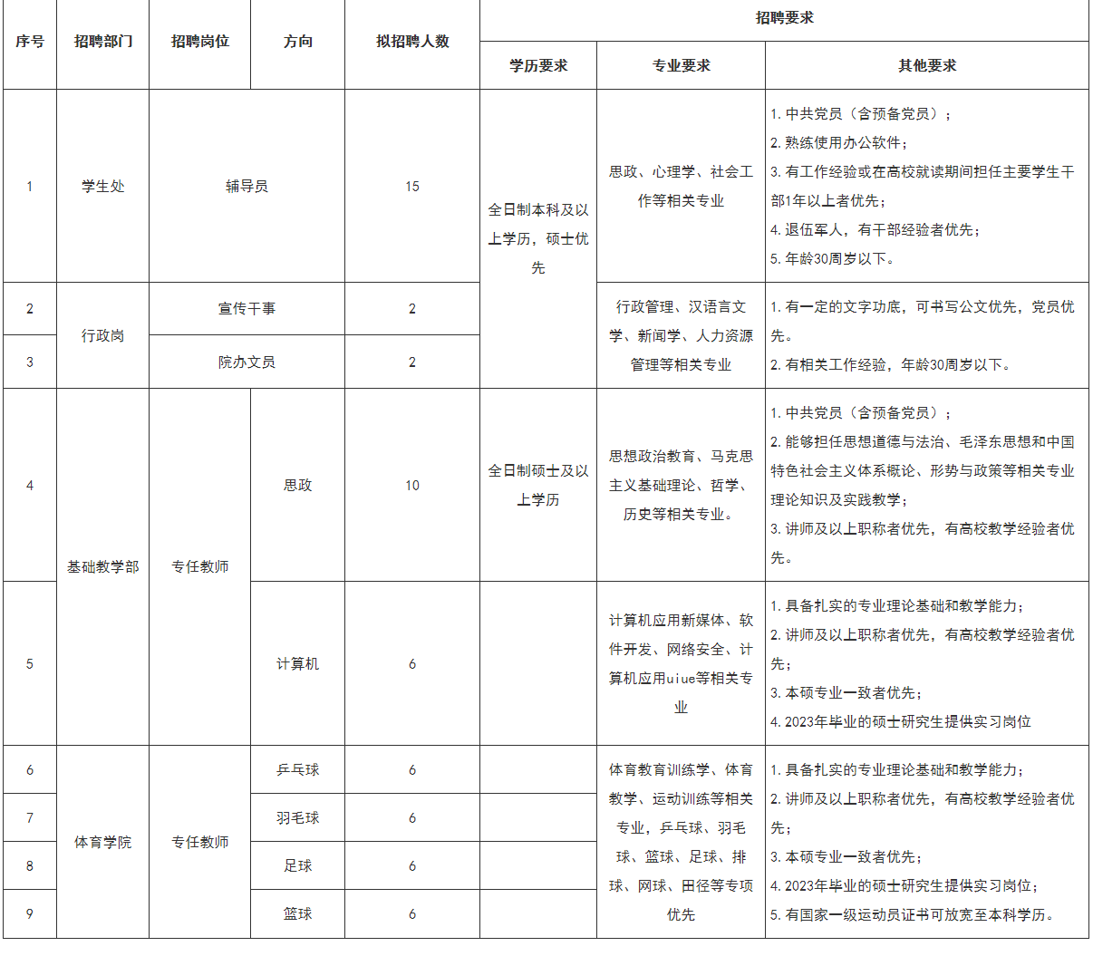 根據學院事業發展需要,現面向社會誠邀熱愛高等教育事業的專任教師、行政及管理人員,具體事項公告如下: