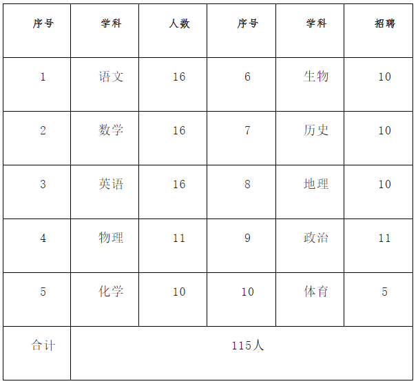 根據(jù)學(xué)校發(fā)展需要,2023年面向社會(huì)公開(kāi)招聘引進(jìn)師范類(lèi)本科及以上學(xué)歷教師115名,具體招聘名額及相關(guān)專(zhuān)業(yè)如下。